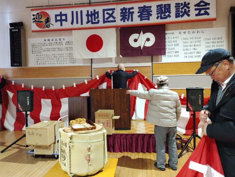 本日(9日)、新春懇談会の会場設営が行われました。実行委員の皆様、お寒い中お集まりいただきありがとうございました。おかげさまで準備万端!当日を迎えられます\(^o^)/