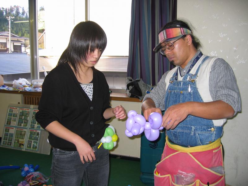 オラクルバルーンの荒川さんをお招きしていろいろ教えていただきました。参加した子が他の人にも伝授して、いつの間にやら、うちのお穣たちはバルーンの名手になっていたわ!
