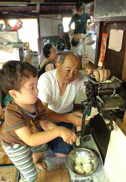 孫と一緒に餃子作りをする、おじいちゃんです。