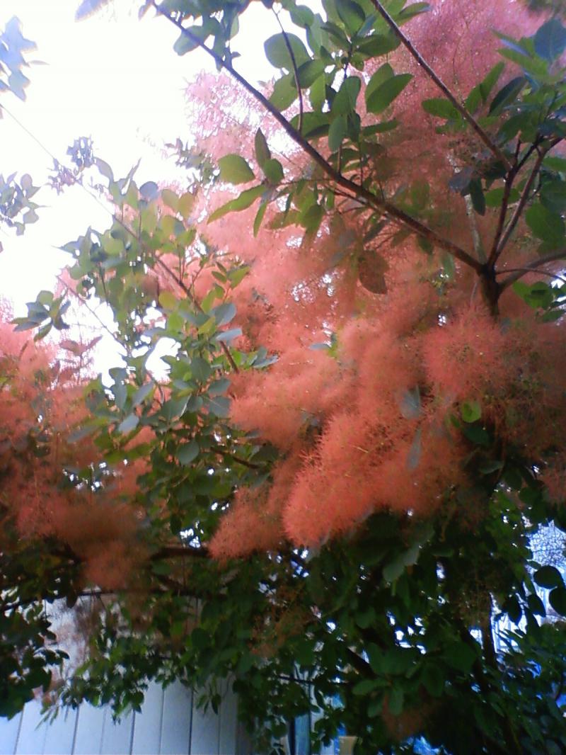 少し肌寒い雨の朝、事務所前のテラスから、淡いピンク色の柔らかなスモークツリーの花を眺めながら飲むコーヒーは格別です。