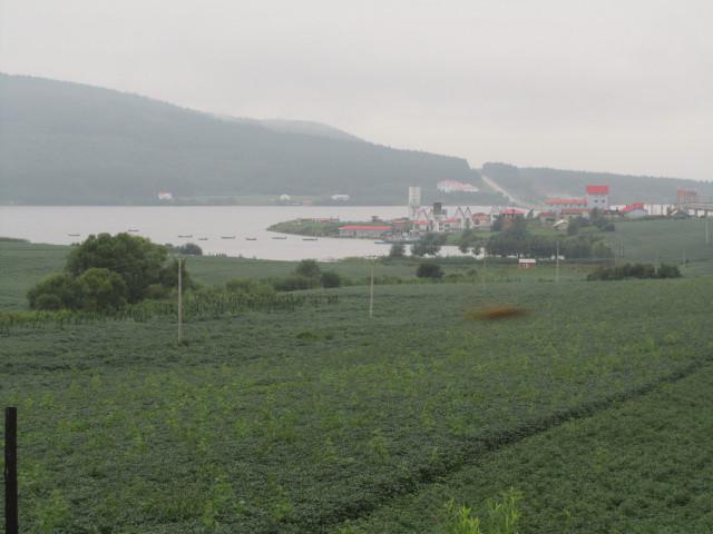 散歩は、村からトウモロコシや大豆の畑が続く丘陵に向かい、鏡泊湖を眺めながら隣の村外れを通り抜け、昨日通って来た幹線道路まで5q程歩きました。途中、昨日挨拶だけした、村の共産党書記をしているという、孫さん夫婦と会い、「毎日散歩をするのですか?」と聞いてみると、「ほぼ毎日です。」と笑顔で言いながら早足で歩いていきました。
