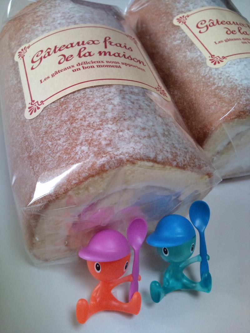 今日のおやつは、三軒隣りのお菓子屋さんの作りたてのロールケーキo(^o^)o