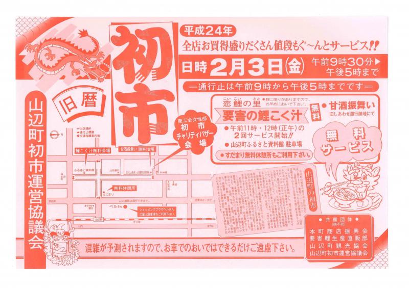 2月3日(金)旧暦「初市」が山辺町で開催されます。