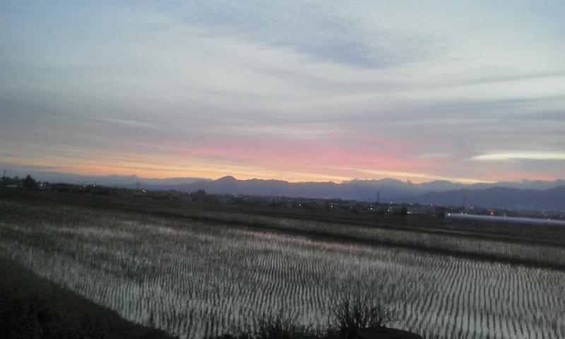 今朝の朝焼けは久しぶりに鮮やかなオレンジ色でした。一部色づいた佐藤錦の朱と同じ色合いです。