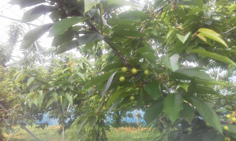 昨日から梅雨入りかと思われるような天候ですが、雨除けテントの下でサクランボは順調に生育しています。