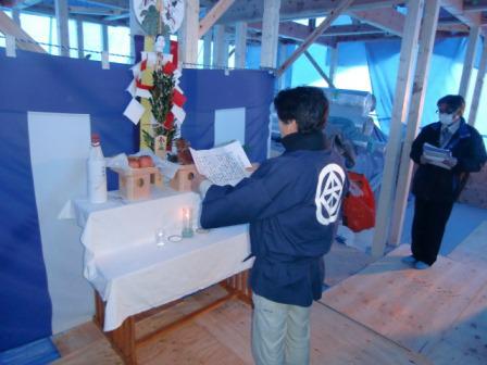 大工、弊社社長、営業・設計担当、現場監督より玉串拝礼を致しました。