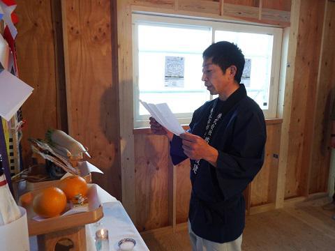 先日、無事に棟も上がり上棟式をむかえることができました。滞りなく式も進み、菊池幸生社長のご発声により乾杯をおこないました。季節も大分暖かくなってきており仕事もしやすくなってきましたが、安全対策を十分に行い、怪我に注意しながら仕事を進めてまいります。