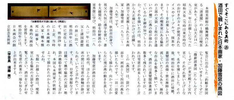 山形新聞酒田専売所の読者に月に1度配布される「まちかどエッセンス」に平成27年5月号から『すぐそこにある美術』というコラム名で、学芸員二名と館長が交互に書かせて頂いております。 最新号がでましたのでお知らせいたします(^^ゞ