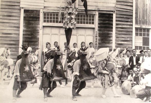 諏訪神社の例祭で毎年8月27日は豊年獅子踊りが奉納される、昭和の記録写真に小松青年学校前で戦後初の昭和21年の獅子踊り写真があったので掲載、今とは衣装がずいぶんと違うようです、まだ川西町となる前の小松町であり、星のようなマークは小松町の記号でしょうか、早乙女の顔も現在とはちがい見えるようになっている、そういえば子供の頃、女人禁止のお祭り、早乙女も男性でスネ毛が見えて気持悪いと思ってました、オマケに顔も出してるのだからなおさらですが、現在は顔隠してるからまだいいと思う、それと女性もOKになり良いですね。小松豊年獅子踊は、平安時代の初めに法輪のかどでこの地に流されてきた法相宗の高僧、徳一上人を慰めるために、この地の里人が踊ったのが始めと伝えられています。その後、江戸時代には豊作の年のみ踊ることが許されことから豊年獅子踊と呼ばれるようになり,8月27日は諏訪神社例祭で奉納されている、三匹獅子の躍動と牝獅子による火の輪くぐりが見どころ。因みに青年学校とは、私の父母、昭和一桁生まれ世代のもの、昭和10年(1935)、実業補修学校・青年訓練所を統合し全国市町村に設置された学校。小学校卒業の勤労青年に職業教育・普通教育・軍事教育を行った。昭和14年、満12歳から19歳未満の男子は義務制となり、軍事教育が中心となったものでした、戦後昭和22年に廃止されてます。