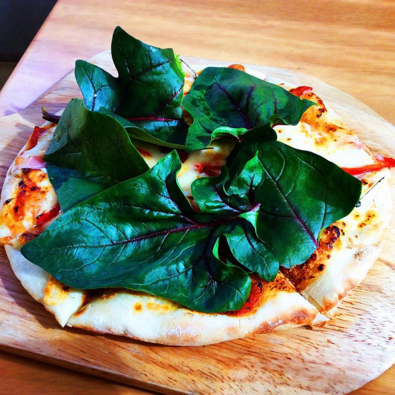 いつも仕入れをしている農家さんから珍しい野菜を入手しました。「サラダほうれん草」私も初めて見ました。味見して見ると、ほうれん草特有のえぐみが少なく、軸は赤みがかってるのが特徴実は軸の方が甘みがありました。サラダほうれん草とつくぐらいなので、生のままピザのトッピングに!お客様からの反応も上々です(*^_^*)!