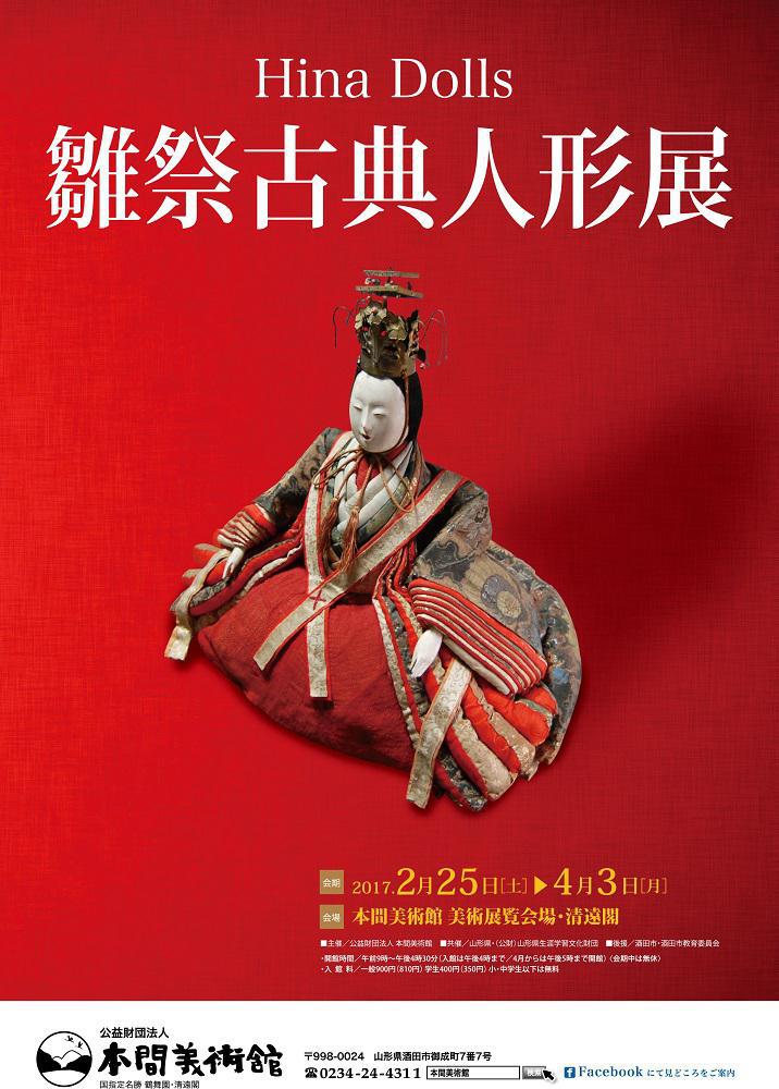 2月25日より春を告げる展覧会「雛祭 古典人形展」を、美術展覧会場と清遠閣の全会場を使って開催します。写真は昨年の雛祭の様子です。毎年少し展示の仕方を変えていますので、今年はどうなるかお楽しみですね|д゚)   内容としては、美術展覧会場では雛人形、御所人形、衣装人形を時代ごとに展示し、一体一体に分かりやすい解説をつけています。清遠閣会場では、旧家の壇飾りや実際に奉納された古い傘福をご紹介します。   また、今年は美術展覧会場の方に、近代日本画を代表する竹内栖鳳の≪富士図≫を特別公開します!六曲一双の大画面に刷毛で山肌を一気に描き上げる、気迫に満ちた雄大な富士の姿をご覧ください。 本間美術館の「雛祭 古典人形展」も酒田雛街道のひとつですので、酒田へお越しの際はぜひ足をお運び下さい。  ※明日から24日(金)まで、展示替えのため全館休館となります。