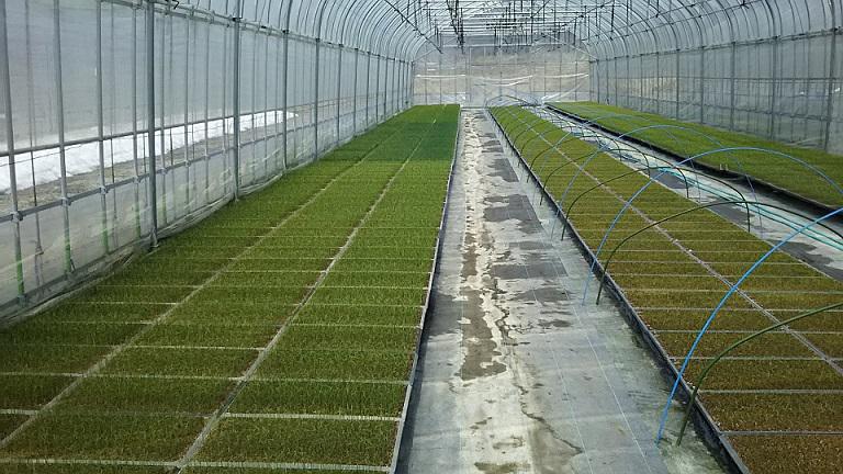 今年の舟形町の雪は、例年より少なめでした。ハウス周りの行きもすっかり溶けて、今ハウスの中はネギの苗が、芝生のように緑がいっぱいです。水田用の種もみは、もうすぐ芽を出す準備で、水の中でじっとその日を待っているようです。トマトも順次種まきをして、5月植えの苗の接ぎ木をいているところです。ラズベリーの畑には、まだ雪が残っていて入れません。今年もよい実が育ちますように。