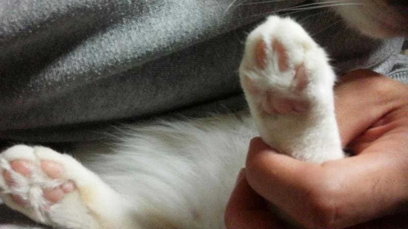 肉球まわりの毛もフサフサの冬仕様になっています。廊下で滑るはずだよね(笑)