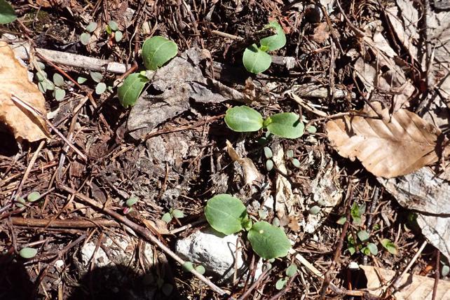5/23日 ミヤマニガウリが西川町にある県立自然博物園で観察しました。京都大生態学研究センタ−酒井教授中心研究を継続します。サブメンバーの博物園指導員の長岡信幸です。 1.種子落下の状況観察。原則として裂果三個とそのばらつき調査をしています。 2.葉の苞葉内の種子数(裂果数=予想3ヶ)による調査をします。