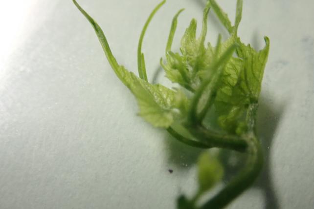 8月2日現在先端で小葉やそれに伴う葉腋は見られ、小穂状が観察できたがそれが何なのか確定できない。花序は今日現在では見られない。