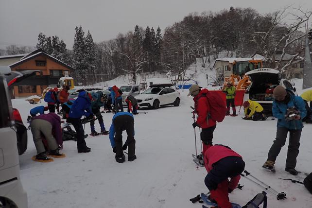 参加者30名スノーシューイングで地蔵沼〜一本ブナ周辺湿地中島〜清水コースと積雪あってこその散策役2時間。昼はおいしい山菜蕎麦で一年しめくくり。愉しい雪が舞って(待って)いる。