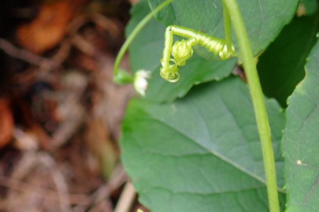 最先端部は葉腋から単葉と長柄実が見られ、葉の重なりは見られない。