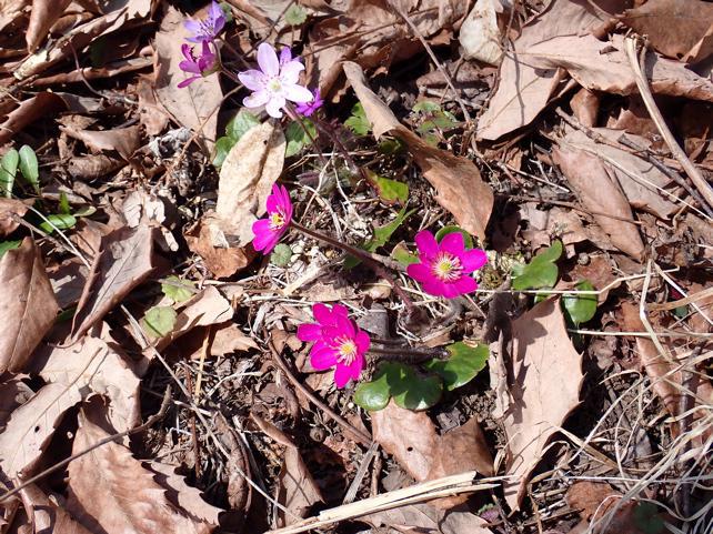 ミスミソウの花色が目だちました。園内のバス停で一休み。落ち葉舞い、遊び回り、はたまた囁いている様子が心にしみました。