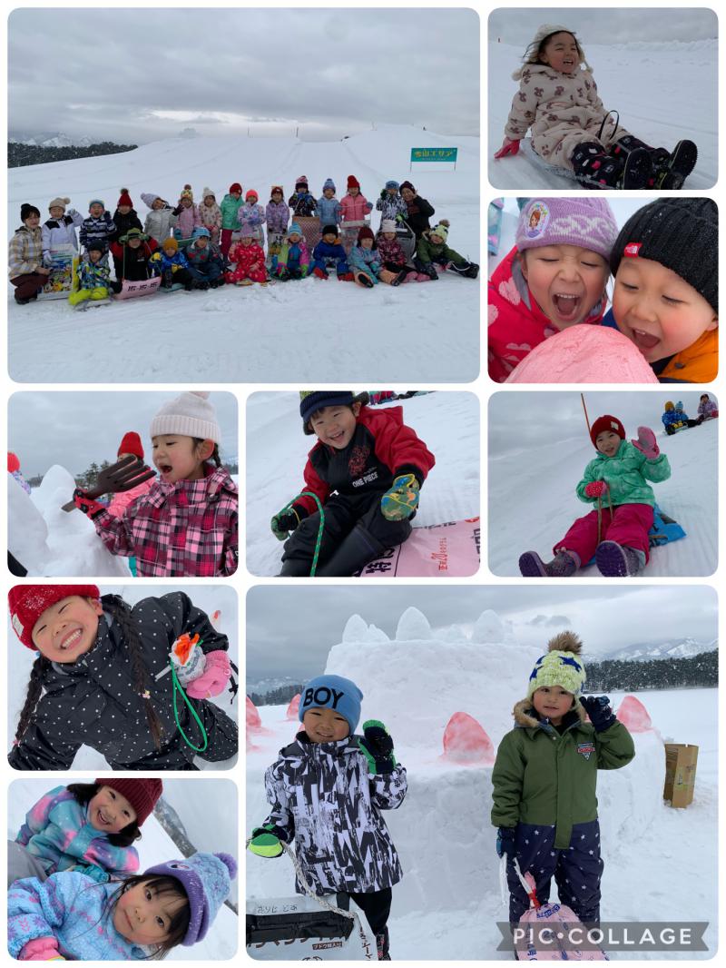 以前からずっと楽しみにしていた子どもたち、大きな雪の滑り台に大喜びでした!坂道を登っては、何度も高い所からのソリ滑りを楽しんでいました✨寒さにも負けない元気いっぱいのうさぎぐみさんです!