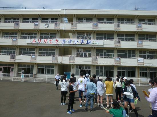 修学旅行2日目、今日も6年生22名、みんな元気です!!昨晩は、若干の友達同士のお楽しみもあったようですが、みんなぐっすり眠れたようです。まずは一安心。エネルギーをチャージします!おいしそうな朝食!!いただきます!!朝からにこにこ〜みんなとってもいい笑顔!!普段はマスクを着けていますが、マスクのない子供たちの笑顔って最高ですね!!まさに天使!お世話になったホテルとのお別れの式、退館式を済ませ、いざ最初の見学地へ!仙台うみの杜水族館に到着。ここでは2班に分かれ、普段は行けない場所にも案内していただくことになっています。この水族館の目玉でもある、太陽光が降りそそぐ巨大水槽は圧巻!!まるで海の中にいるような感じでした。これは仙台名物の・・・今回は特別にバックヤード(裏側)にも入れていただきました。ここは、表の水槽に入る前の魚たちが体ならしをする水槽・・・。準備運動段階ですね。水槽掃除やえさやりをするときに着るウエットスーツもたくさんかけてありました。中には、一人で着ることができず、複数で協力して着なければならないようなスーツもあるとか・・・さまざまな標本も見せていただきました。これはサメの口の骨だそうです・・・「おっきい!!」これは抜けたペンギンの羽を一枚一枚丁寧に張り付けた標本。こんなお仕事しているんですね。曇っている・・・ここはマイナス23度!!何の部屋?・・・ここは魚たちのためのえさが入っている冷凍庫でした・・・寒かったあ!!そしてもう一つのお楽しみ。イルカとアシカショーです!ダイナミックなパフォーマンスに子供たちも大興奮。生き物たちとトレーナー、そしてお客さんが一体となった素晴らしいひと時でした。このオウムは観客の頭の上をぐるぐる旋回したり、頭すれすれでトレーナーのもとに着地したりと、ドキドキハラハラの演技を見せてくれました!そのあとも班ごとに、いろいろな場所に出かけ、楽しむことができました。「ペンギンとどんな会話をしているのだろう・・・?」昼食は、塩釜のかまぼこ屋さんでいただきました。新鮮な海の幸に子供たちも大喜び!堪能しました。さあ、カニとの格闘開始!!よくカニを食べているときは静かになるといわれていますが・・・もしかすると一番静かになったのは職員かも・・・たらふくごちそうになり、幸せな気分で次の見学地に出発しました。仙台市立荒浜小学校に到着です・・・言わずと知れた、ここは、東日本大震災の震災遺構の一つです。専門のガイドさんに詳しくご説明いただきながら、津波の恐ろしさを学習することができました。1階部分は完全に水没してしまった場所。保健室や1年生教室がそのままの形で残されていました。午後3時55分で止まっている体育館にかけられていた大きな時計。これは津波が荒浜小学校へ押し寄せてきた時刻だそうです・・・津波が到来したときのおそろしさや、避難してくる近隣住民の緊迫した様子などを、当時の校長先生や教頭先生、地域の方々が映像を通してお話してくださいました。黒板に書かれているお名前は、避難してきた地域の方々がどの教室にいるか、一目でわかる記録だそうです。津波前は荒浜小学校付近にこんなにも家やお店があったことを示すジオラマ。避難した方々に配布された毛布や食料。当時は物資が足りず、2人で一人前を分けたとのことでした。どんなにか心細かったことでしょう・・・。1階と2階の階段踊り場。こんな高さまで津波が到達していたんですね・・。荒浜小学校の屋上。ここからひとりひとり小学生が救助用ヘリコプターに吊り上げられ救助されました。津波が襲ってきた海のほうを見つめる子供たち・・・「何を想う・・・」海岸付近には犠牲になった方々のご冥福をお祈りするための慰霊の塔(荒浜慈聖観音)が建てられました。高さは津波の高さと同じ高さといわれています。そのあと海岸へ足を運んでみました。こんな穏やかな海なのに・・・子供たちはどんなことを想っていたのかなあ・・・自然の驚異とともに、「いのち」の大切さを強く心に刻んだ貴重な体験でした。見学後、荒浜小学校の校舎の前で、どこからともなく、「♪生きてゆくことの意味♪〜問いかけるそのたびに♪〜・・・」竹内まりやさんの「いのちの歌」を歌う声が聞こえてきて、いつしか6年生全員で、鎮魂そして命の尊さ、生まれてきたことへの感謝を胸に、心を込めて合唱していました。思わず涙が込み上げてきた瞬間でした・・・。そして修学旅行最後の見学地、青葉城祉に到着です。最初に青葉城資料展示館で、伊達政宗についてお話を聞きし、その後、仙台城を復元した映像を見せていただきました。残念ながら伊達政宗公騎馬像は3月の地震で傾いてしまったため、見ることはできませんでした。それならば!東北最大の都市杜の都仙台をバックに写真撮影!!いい顔ですね!楽しかった修学旅行も終わりが近づいてきています。バスで山形に向かいます!!ですよね・・・。疲れもMaxを迎