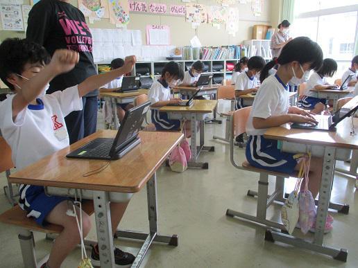 この日は、コンピューターの専門家からのご指導の日。2年生は、まだローマ字は読めませんが、ローマ字入力のためのブラインドタッチの練習です。 ○と△で8という勉強です。頭の中は、数字でいっぱい!使ったところが強くなる!がんばれ! 今、自主学習の展示会をしています。復習よし、自分が勉強したいことよし!興味を持ったことをどんどん進めてほしいと思います。 ふっふっふ、この二人、毎日校長室にコントをしに来てくれます。このコントのテーマは、「イノシシ狩り」。 はい、いい顔ありがとう!エネルギーもらった!今のうちにサインもらっておこうかな! 理科、何やら必死にスケッチ。そっと撮ったつもりが・・・やられた!ピースサインばっちり。 リズムの勉強。タンタン・・・、調子いいねえ! タタが入ると・・・ 難しいよねえ・・!ちょっと手が止まった・・・!またまた使ったところが強くなる!がんばれ!の第2弾。 6年生、修学旅行にもっていくバッグ作りの大詰め。あと5日ですよ!楽しみ楽しみ。 手と目と頭で、丸ごとブラッシュアップ!教職員一同、97人を磨き続けます・・・!