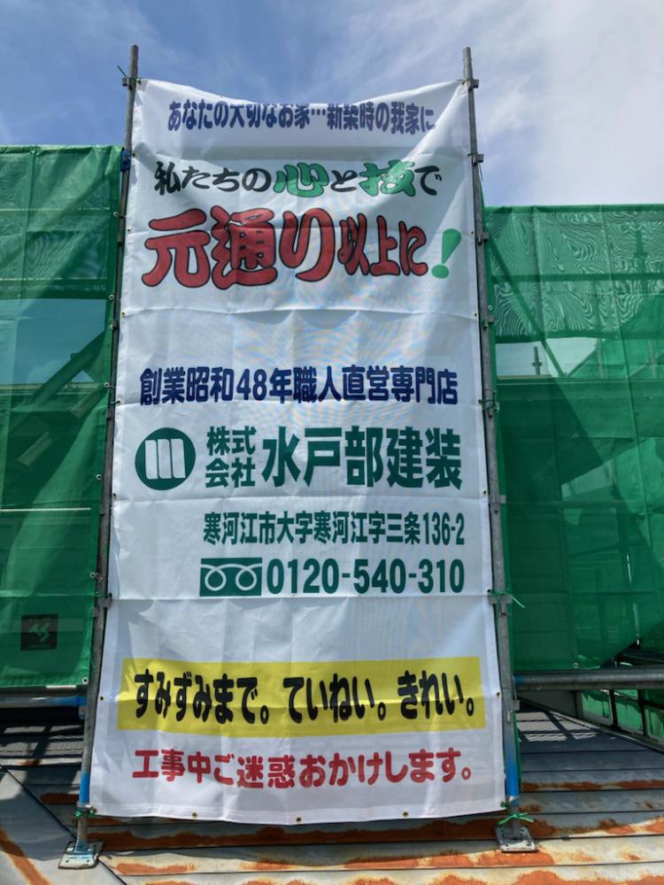 山形のサイディング塗り替えは水戸部建装へ!シーリング隊長です。今日も無風…。朝から暑かった!まだセブンイレブンの日この先どれ程暑さが続くのか(+_+) 先週洗浄してもらった寒河江市内O様邸にて本日よりシール工事に着工しました。 昨日お知らせしたとおりお馴染み看板シートも水戸部建装に変わりました。お客さまへの挨拶の時には、油断すると水戸部塗装でした〜と言ってしまいそうになりますけど(^_^;) こちらはアイジーサイディングラップのシーダー柄でしたっけかな。サッシ廻りは打ち替えというよりも大きくかぶせて再シール。出隅の役物と入れ隅は元々施工されてないので新規に打ち込みとなります。最近ではカタログに施工マニュアルが載ってますがこの時代には職人の感覚によるもの。普通の雨水ならまっすぐ伝って下から排出されますがそれまでの間にサンドイッチされている断熱材が吸水してしまい錆が発生する事例が多く見受けられました。現在は撥水する断熱材になってますが縦張りなんかは切断小口から給水しないように下から数センチ、断熱材を撤去しています。 天気を見ながら今週で完了の予定です。