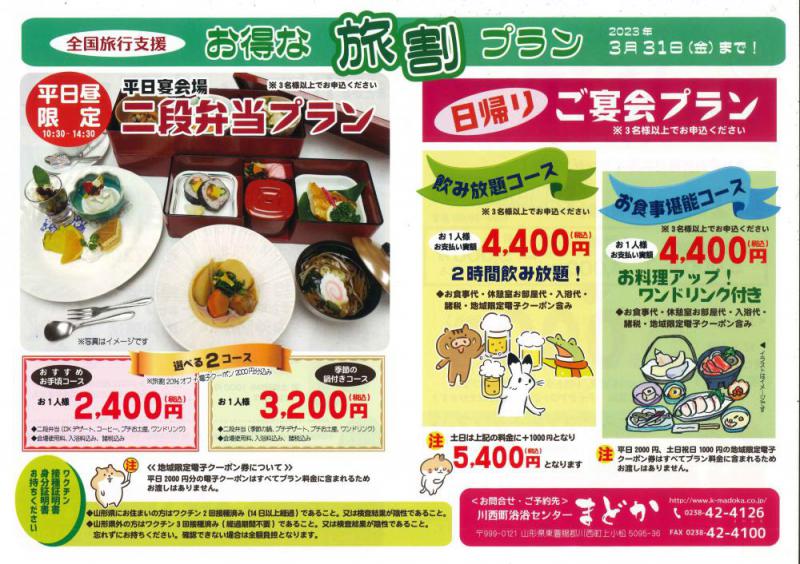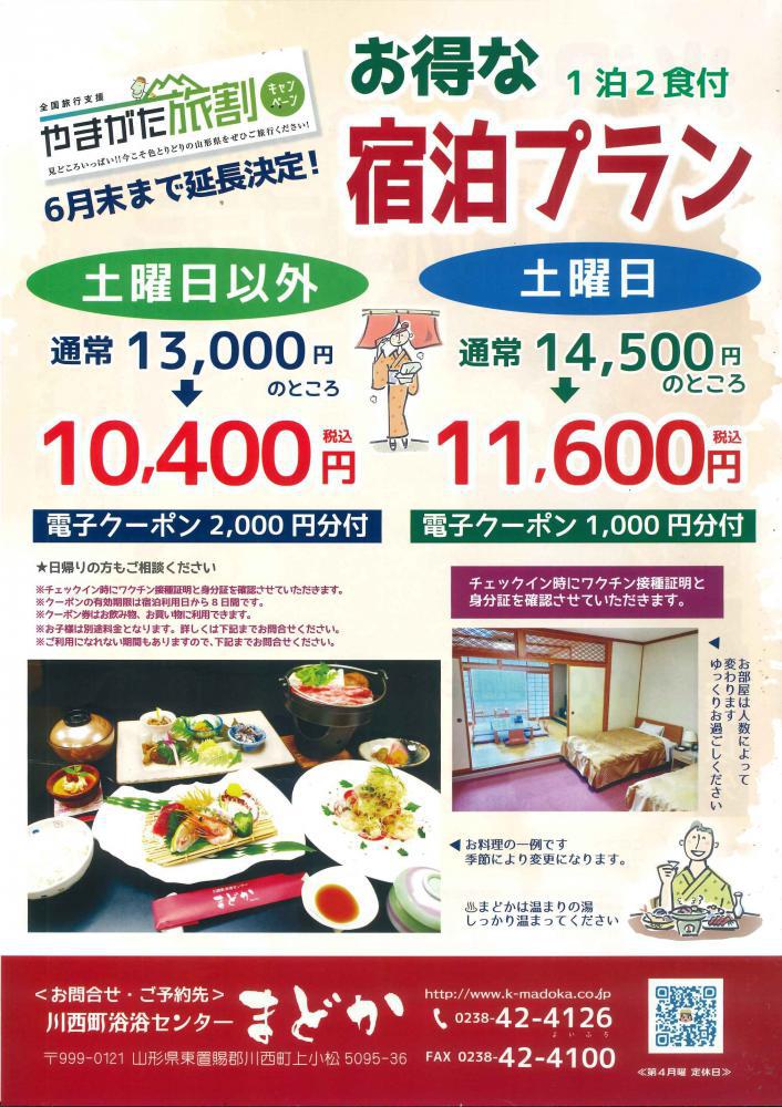 まどかの宿泊旅割6月延長受付終了しました。直接予約受付枠あります!!→販売枠終了しました!!宿泊・日帰りお弁当プラン・宴会等ご予約お待ちしております♪