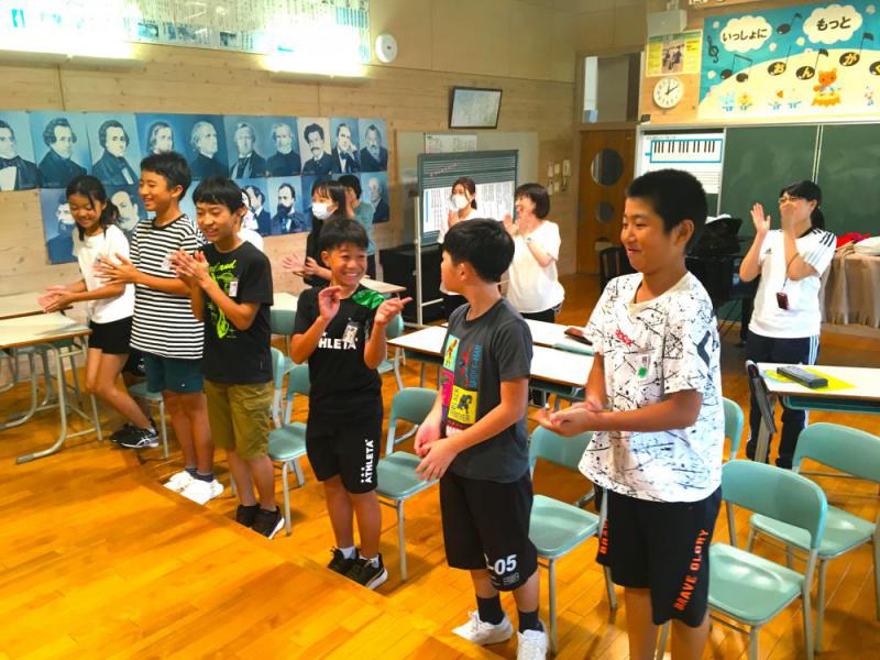 3年生から、音楽の合奏発表に招待いただきました。「ゆかいな木琴」という曲です。1学期に自分たちの合奏を聴いてもらった6年生や、時間の空いている先生方も聴きました。観客が増えて緊張の面持ちでしたが、4人の息がぴったり合った素晴らしい演奏でした。演奏後は、人数は少なくてもがんばった4人に大拍手でした。子供たちもとても満足そうでした。