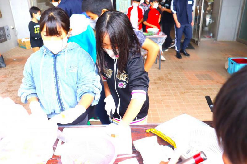 本日、芋煮会を実施しました。雨天のため、ピロティを使って調理を行いました。これまで計画や準備をしてきたとおり、役割を分担してスムーズに活動していました。どの班も味付けも大変うまくいき、1〜3年生もおいしくいただいたところです。各班の鍋がすべて空になるほどの大成功で、子供たちも大満足だったようです。お家の方にはおにぎりをご準備いただき、ありがとうございました。