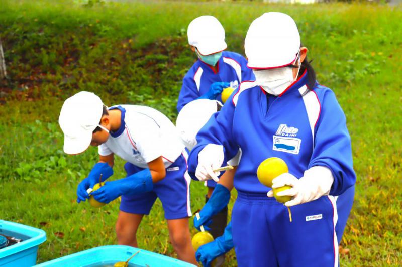 5日に、4年生がひょうたんの種とりを行いました。今回も地域の先生方においでいただき、やり方を教わりながらの活動です。特に、ペットボトルのキャップを使って表面の皮をそぎ取る作業をがんばりました。独特のにおいがする中で、最後まで一生懸命に活動していました。