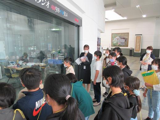 10月10日、5年生は山形市へ。YBCの生放送の番組をやっているときにちょうど着いたので、出演したとか!ラジオを聞いていらした数人の方から、連絡もいただきました!なんてついている5年生! この真剣な顔、いいですね!たくさん学んで! やや緊張ぎみ!? 今後は、アナウンサーになったようでいい気分の顔たちでした。 H君、何を質問したのかな。みんなも学んだことを書きこんでいます! おっ!なんと!自分もこんなお弁当を食べてみたい! 楽しい楽しいお弁当タイムは、蚕桑小が誇るコメディアン、T君のいい顔で締めくくりましょうか! ここは、山形新聞社の中。どんな勉強をしているのかな。 質問にも、しっかり答えていただいたようですね。 生放送出演、次の日の山新にはみんなの写真も載せていただくなど、思い出に残る山形見学になりました。5年生は、少しずつ少しずつ101年目の蚕桑小学校の6年生として下級生をリードする力をつけています。
