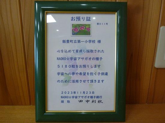 昨年に引き続き、今年も、NAOKO☆宇宙アサガオの種子をたくさん採取できました。主に教頭先生が指導する6年生の理科の時間を使って、大切に育ててきました。6年生は、巻坂先生が準備してくださった花壇に種まきをした時から、輪番で忘れずに水かけをしました。夏の暑い日には、多くの美しい大輪の花を咲かせ、見る人の目を楽しませてくれました。そして今秋、6年生みんなで種取をし、5180粒の種を採取することができました。この度、その種子をNAOKO☆宇宙アサガオ種子銀行にお送りしました。来年は、全国の違う学校で、この命が受け継がれ、またたくさんの花を咲かせてほしいと願っています。