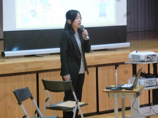 11月29日の全校朝会で、町の栄養教諭の先生から「そだてよう!強い心と体」について、大切なお話をお聞きしました。まずは、毎日給食を提供している共同調理場での仕事の様子や働いている人について教えていただきました。また、学校給食には地元の食材がたくさん使われていること、丈夫な体をつくるために様々な栄養をバランスよく考えて一食分が作られていることなども、分かりやすくお話してくださいました。当たり前に毎日食べている給食について、じっくり考える時間になりました。これからも、おいしく、残さず、感謝の気持ちを持っていただき、心も体もたくましい一っ子を目ざしてまいります。