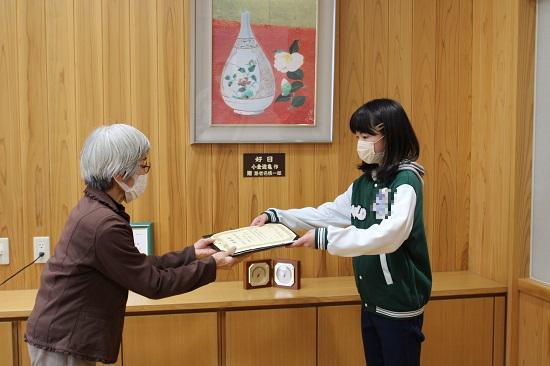 12月11日、長井法人会の方々がご来校され、「税に関する絵はがきコンクール」に入賞した2人の6年生に、賞状が手渡されました。おいでいただいたのは、長井法人会梅津会長様、後藤女性部会長様、そして事務局の土屋様。「どちらの作品も、細かいところまで丁寧に、分かりやすくはっきりと描かれていますね。」と、お褒めの言葉を頂戴しました。作品は後日、町民総合センター「あ〜す」に展示されるとのことでしたので、お時間のある方はぜひ足を運んでみてはいかがでしょうか。残念ながら入賞には届きませんでしたが、応募してくれた6年生みんなに大きな拍手です!!