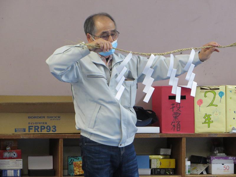 12月15日(金)、5年生のしめ縄づくり体験を行いました。最近ではお正月にしめ縄を飾る家庭も少なくなり、子供たちは興味津々です。まずは、しめ縄の歴史や由来についてお話をお聞きしました。その後、グループに分かれて活動開始です。地域の先生方に丁寧に教えていただきながら、熱心に取り組みました。「おっ!上手だなあ。」「覚えるの早い!」「1回目にしては綺麗だな!」・・・先生方からのお褒めの言葉があちこちで飛び交います。最初は戸惑っていた子供たちでしたが、時間が経つにつれて、器用に縄をなっていきます。ほら、こんなに上手にできました!今の時代では、なかなか体験できないことを教わりました。今年度の5年生の田んぼ学習に係る体験活動は今回で一区切りとなります。これまでご指導いただきました小山沢中山間地域づくり推進協議会の皆様、ありがとうございました。
