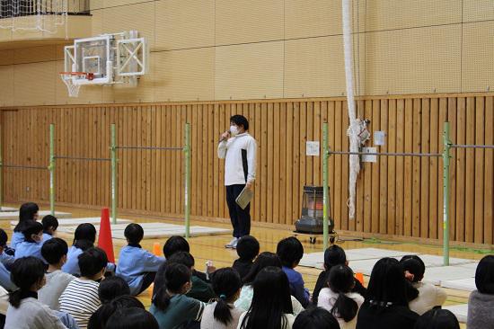 12月20日の朝の時間、これまでの練習の成果を披露する鉄棒発表会が行われました。12月1日から、体育館に鉄棒を常設し、体育の時間だけでなく、休み時間を使って自分の技を高めてきました。当日は、一人一種目ずつ、得意な技や新たにできるようになった技を中心に全校生の前で発表しました。自然と拍手が鳴ったり、「おおお!!」という歓声が上がったりと、仲間をたたえ合う姿にも感動しました。大成功の発表会でした。本校の鉄棒運動のレベルはとても高いと思います。機会があれば、ぜひ保護者の皆様にも見ていただきたいと思いました。トップバッターは3年生。次は2年生。1年生。4年生。5年生。最後は6年生。