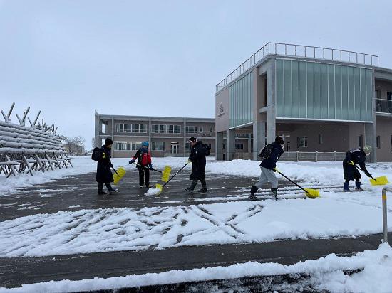 先日、雪が降った時、一人の6年生が雪かきをしてくれたことをお知らせしました。今朝も久しぶりに降雪がありました。すると、雪かきスコップを持った6年生が続々集まってくれました。話を聞くと、先日、雪はきをしてくれた児童が友達に声をかけてくれたとのこと・・・。登校してきた友達も、とても歩きやすそうに昇降口に向かっていました。朝からとてもうれしい気持ちでした。「誰かのためになる。」「誰かの役に立つ。」まさに「美しい心」の体現ですね。伝統になってくれるといいなあ・・・。