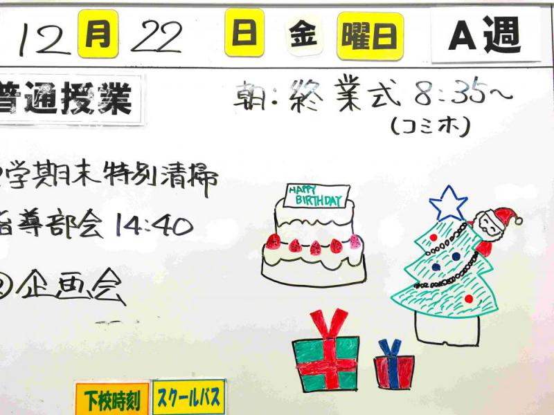 朝の時間に2学期の終業式を行いました。式の前に、読書と650のがんばりを讃え合いました。代表児童の発表では、行事でがんばったことだけでなく3学期の決意も述べてくれました。今年最後に歌う校歌も、全員でとても力強く歌うことができました。凛とした雰囲気の中、素晴らしい態度で2学期を終えることができたこと、うれしく思います。