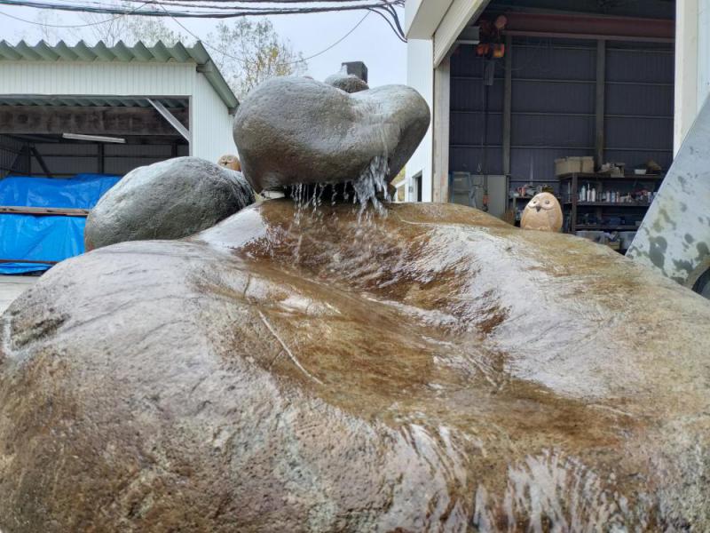 ____安山の滝蔵王の天然石を使った滝です。水が岩肌に滴り落ちる音が心を落ち着かせてくれます。露天風呂や日本庭園などにとても良く相そうです。岩肌が乾いているのと濡れているのとでも雰囲気が全く違います。 蔵王からとれる天然石は石風呂にできるものだけではありません。石風呂にするには大きさが足りないものや形状が適さないものの方がむしろたくさんあります。加工の段階で石風呂に向かないことが分かることもあります。手つかずの自然から出土した石のため当然です。ですが石風呂にできないからといって不要のものではありません。墓石や置物をつくることもできますし、組み合わせでおもしろくなることもあります。一つひとつ異なる石をどう捉えてどう活かすかは、難しくも楽しいものがあります。   一つとして同じ表情の無い蔵王の天然石から削り出す石風呂。永い年月の中で石に蓄えられたパワーは心と身体に癒しを与えてくれます。____それはまさに自然からの贈り物。株式会社ざおうコーポレーション 石材部門では蔵王の天然石を使った石風呂を制作・販売しています。ご興味がございましたらぜひ一度展示場へお越しください。https://zao-stone.jp