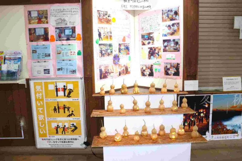 4年生がこれまでずっと学習してきた米坂線復興への思いが、羽前椿駅に展示されています。学習内容をまとめたものと、自分たちが育てたヒョウタンで作ったランタンです。力作です。12月に町の観光協会の方にプレゼンをし、企画書も提出しています。4年生の思いがぜひ届いてほしいと思います。地域の先生方、ご協力ありがとうございます。