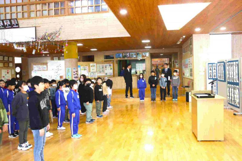 本日の全校朝会は、学級委員任命、表彰、3学期がんばることの発表でした。学級委員になった子供たちには、各学級での今年度の締めくくりをがんばってほしいと思います。表彰は「未来の夢科学展」のものでした。1年生2名が優秀賞をいただきました。3学期がんばることの発表は、2年生の代表児童が行いました。「優しい心」をもって過ごしたいという言葉が胸に響きました。
