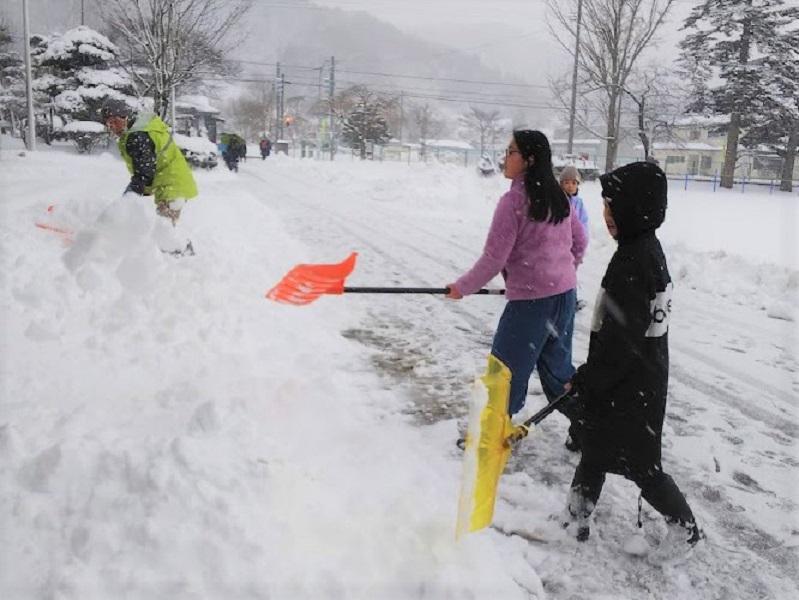 1月25日(木)、今日は朝から雪が降る、冬らしい天気となりました。昇降口前では、子供たちの登校する前から、職員が除雪作業を行っていました。すると、一人、二人・・・高学年を中心に、登校した子から進んでお手伝いをする姿が見られました。中には低学年の姿も。このようなちょっとした行いも、高学年の姿を通して下級生に受け継がれていくのですね。寒い朝でしたが、心温まる場面でした。お手伝いをしてくれた児童の皆さん、寒い中ありがとうございました!――――――――――――――――――――――――――――――――――――――――――――――――さて、こちらは、業間の時間を利用した「東根RED」の取組です。冬期間は縄跳びで体力向上を目指します。今日は1・3・5年生が体育館で活動する日です。ステージでは、体つくり委員がみんなに跳び方のお手本を示してくれました。どの子も様々な技に意欲的に取り組む様子が見られました。時間が経つにつれ、肌寒い体育館も熱気で温度が上がっているような感じでした。冬になり、体を動かす機会が減っています。このような取組を通して、引き続き健康な体作りを進めていきたいと思います。