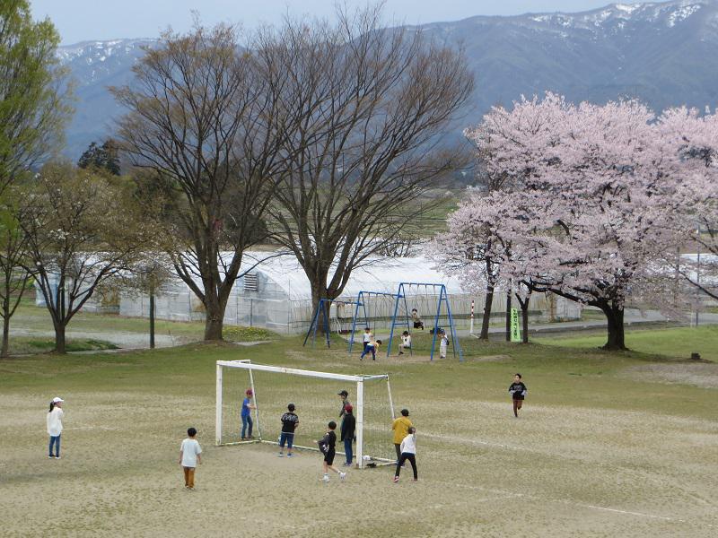 4月16日(火)、今日も青空が広がるいい天気です。あまりの暖かさに、校長室の窓も1日全開にして過ごしました。 今日はロング昼休みの日。グランドから元気な声が聞こえてきます。 あちらでは、6年生が1年生を誘って遊んでくれているようでした。新年度が始まって1週間ちょっとですが、登校時に下級生の世話をしながら歩く姿や元気に挨拶する姿等、随所に6年生の最上級生らしい姿を見ることができます。頼もしい6年生です! o(^-^)o