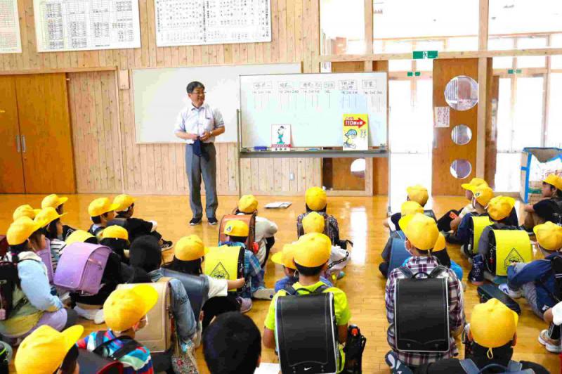 22日の一斉下校時に、通学班に分かれて今年度のこども110番訪問を行いました。全部で35カ所の設置個所のうち、分担して30カ所に訪問させていただきました。地域の皆様にはいつもあたたかく見守っていただいていますが、訪問時にも優しく接していただいたようです。今年度も子供たちの安心・安全を見守っていただきますよう、ご協力をお願いいたします。