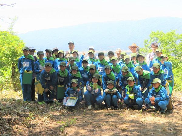 5月22日(水)、宝山において4年生と6年生の自然体験活動を行いました。今年度も、森林インストラクターをはじめ、関係各所よりたくさんのご協力をいただいて実施しました。 頂上では、シンガーソングライター(『リメンバー宝山』作詞作曲者)の金田稔さんから歌声を披露していただきました。そして、2曲目はお馴染みの『リメンバー宝山』。子供たちも一緒に歌いました。 子供たちは五感を通して、たっぷりと宝山の自然を満喫しました。このように充実した活動ができたのも、4日前の18日(土)早朝、PTA執行部、6年生の保護者・児童による整備作業のおかげです。↓整備作業 並びに 自然体験活動にご協力いただきました皆様、本当にありがとうございました! ちなみに・・・頂上から学校を見下ろすと、学校の畑にたくさんの人影が見えました。ちょうど同じ時間に3年生が「岡の台ごんぼ」の種植えを行っていたようでした。「おーーーーい!」「みんな気付いてーーーーーー!」「ヤッホーーーーー!」一足先に頂上に到着した4年生が3年生に向かって大声で叫んだのですが・・・届いたかな?※後で3年生に聞いてみたところ、気付いた子もいたようでした。 \(^o^)/そんな3年生の様子です。ご指導いただきました小松先生、ありがとうございました。先ほどの自然体験活動も含め、本物に触れる体験を通して、子供たちの知的好奇心が大いに刺激されています!