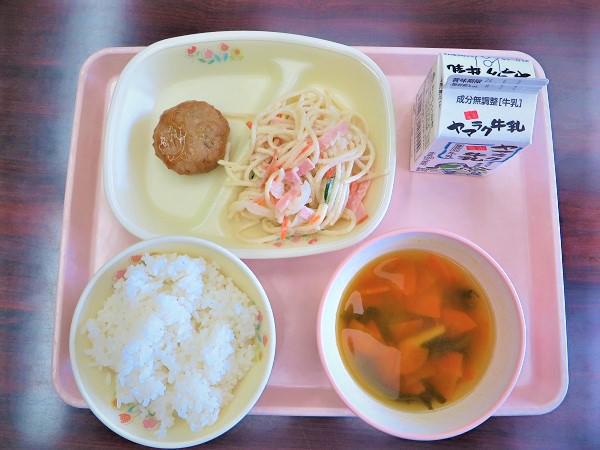 5月27日(月)、この日の給食メニューは「ご飯、牛乳、鶏と根菜の平つくね、スパゲッティサラダ、緑黄色野菜の味噌汁」でした。この味噌汁の中には、町内の小中学生が育てている紅花の ″間引きした若菜” が使われています。本校の4年生も先週の金曜日、間引き作業を行いました。味にくせがないので、生のままサラダにしたり、おひたしや天ぷらにしたりと、様々な食べ方があるそうです。4年生のみなさん、お疲れさまでした!おいしくいただきました (´∇`)
