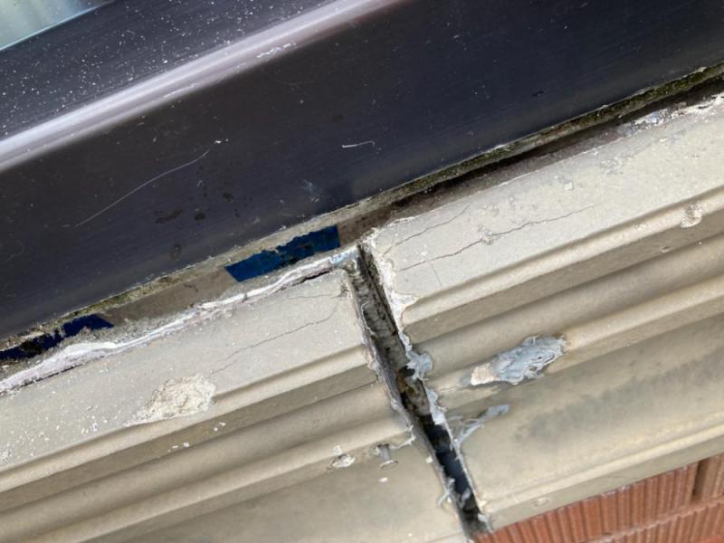 幕板のジョイントのみ打替えに伺ったM様邸翌々日には雨仕舞改善で板金工事を手配していたのでその前に現調がてら既存シールの撤去へ。 むむむずいぶん幕板飛び出とる…。 幕板上端のシール切れ個所から笠木からの伝い水が内部へ。 今回はこの雨水を切るように上端に板金被せつつ笠木の中に立ち上げる計画だったのですがちょい手遅れ。 下がり壁のタイルも白華が見られるため中に間違いなく廻っていそう。 自分の調査では下地の木笠木の天端から100ミリくらい腐朽躯体天端からちょい腐朽でもビスは効くから生きてはいる。そんな感じ。 とりあえずお客様に全部ご説明差し上げて雨仕舞を改善すればこれ以上の腐朽は無いとご納得して頂いた上で躯体までビス止め後板金施工となりました。とりあえずご安心いただけて良かったです!