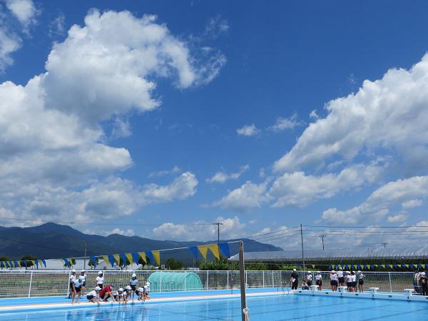 6月17日(月)、待ちに待ったプール開きです。先週から30℃超えの真夏日が続き、子供たちも今か今かと楽しみに待っていました。各学年代表児童が今シーズンの意気込みを堂々と発表してくれました。 そして、プール開きのあと、早速2・3年生がプールに入りました。全校で一番乗りです!気持ちよさそうな歓声が校舎まで響いてきます。今年度も、大きな事故やケガなく、充実した水泳学習になることを願っています。______________________________________________また、今日は清掃ボランティアの皆様においでいただき、校舎の清掃を手伝っていただきました。大変蒸し暑い中ご協力いただき、ありがとうございました。