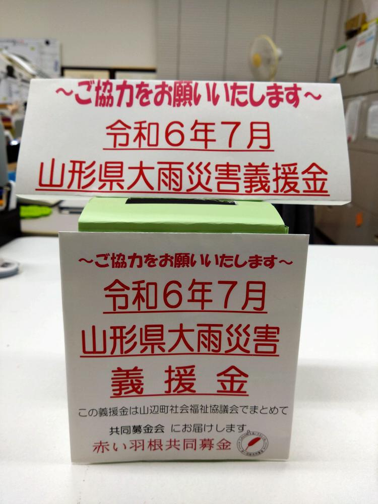 ★赤い羽根共同募金から義援金募金のお知らせ★山形県共同募金会では7月山形県大雨災害義援金を募っております。山辺町社会福祉協議会(きらりやまのべ内)に募金箱を設置しました。期間は令和6年8月1日〜令和6年12月27日となっております。みなさまのご協力をよろしくお願いいたします!