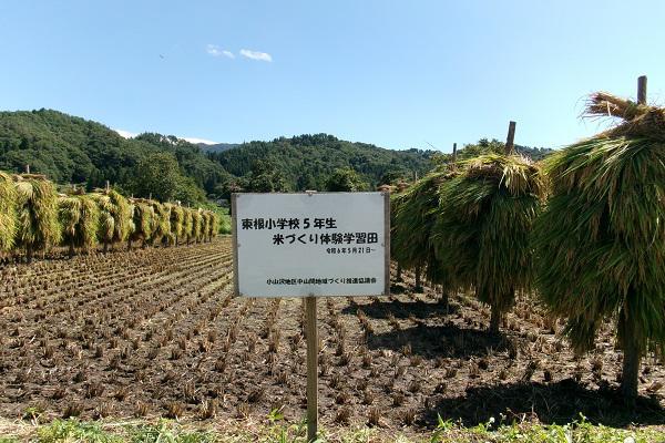 9月17日(火)、秋晴れの下、5年生が学習田で稲刈り体験を行いました。田植えをしてからおよそ4か月、黄金色に色付いた稲穂が首を垂れて、稲刈りを待っているようでした。まずは、田んぼの先生に手ほどきを受けながら、一株ごと慎重に鎌で刈り取っていきます。 刈り取った稲は、ある程度の束にまとめ、杭にかけます。2週間程度天日干しし、次回は脱穀作業を体験する予定です。 ちなみに、遡ること1週間前、5年生は地域の田んぼの先生(村上浩康さん)より米作りについてお話をお聞きしました。米の歴史や仕事の詳細等について丁寧に教えていただき、理解を深めました。 ご指導いただきました、小山沢地区中山間地域づくり推進協議会の皆様、そして、村上様、お忙しい中ありがとうございました! ※先週の強盗事件に伴い、お家の皆様には子供たちの登下校における送迎や付き添い等にご協力いただきありがとうございます。町教委からは、登下校用の送迎バスを準備いただいているところですが、しばらくは土日も含めて子供たちの見守りが必要になろうかと思います。引き続きどうぞよろしくお願いいたします。